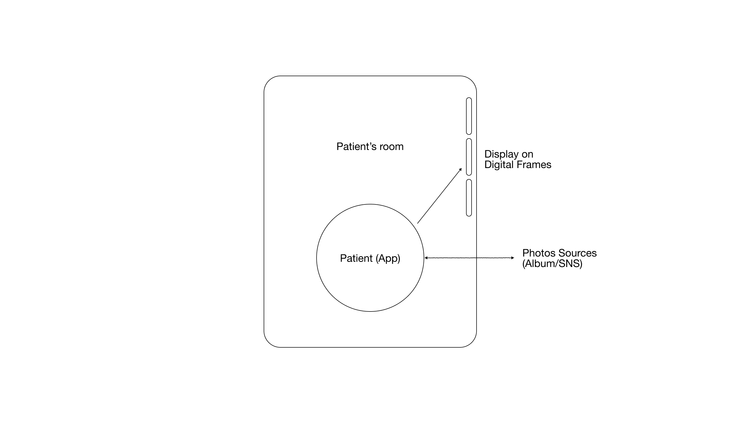 Hospital rooms are built for efficiency, not emotional comfort. Connected Room transforms the hospital wall into a living display, allowing loved ones to contribute photos and messages through a secure companion interface.