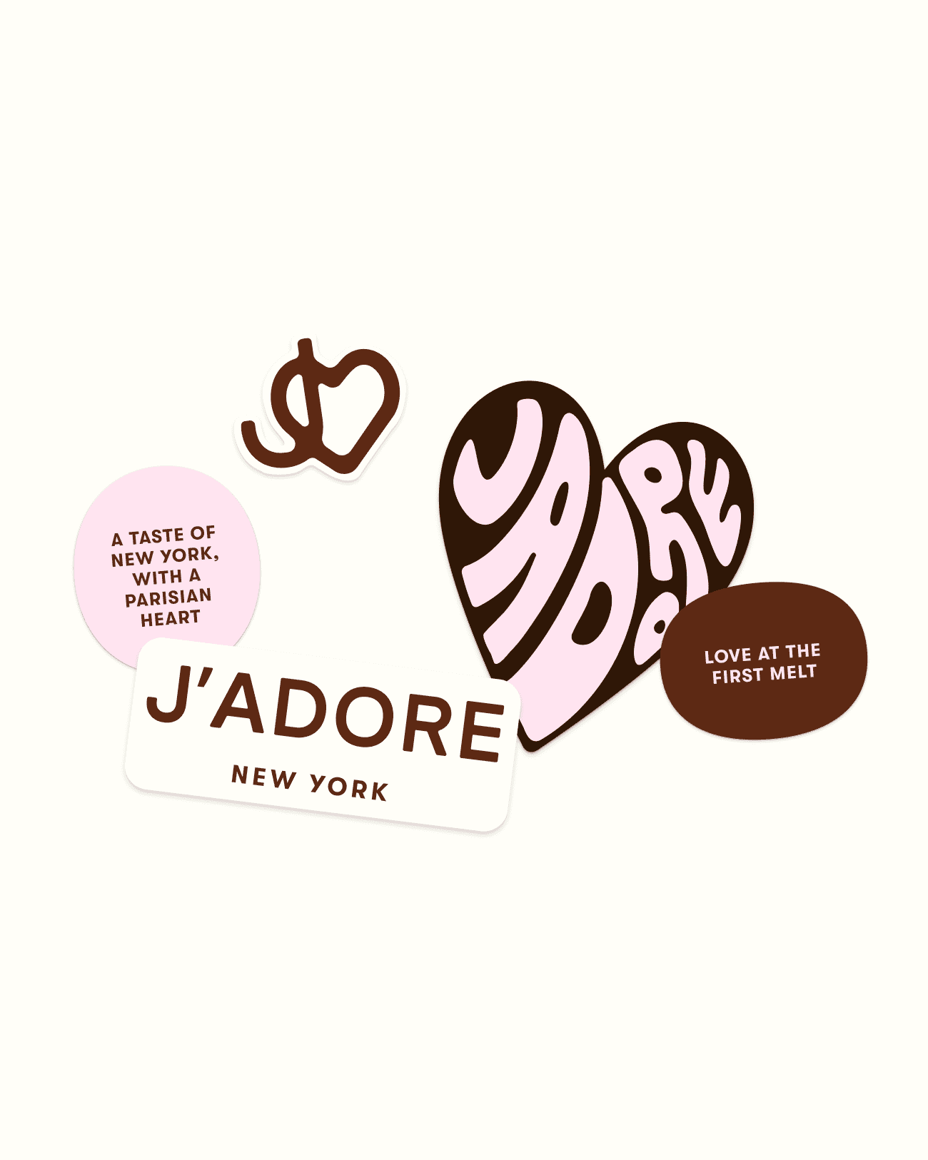 I defined the brand narrative and visual identity system, developing tone, typography, color direction, and a signature monogram that merged the letter “J” with “Adore.” The system extended across packaging, signage, and digital touchpoints, establishing a cohesive foundation that supported early press visibility and measurable growth in online orders following launch.